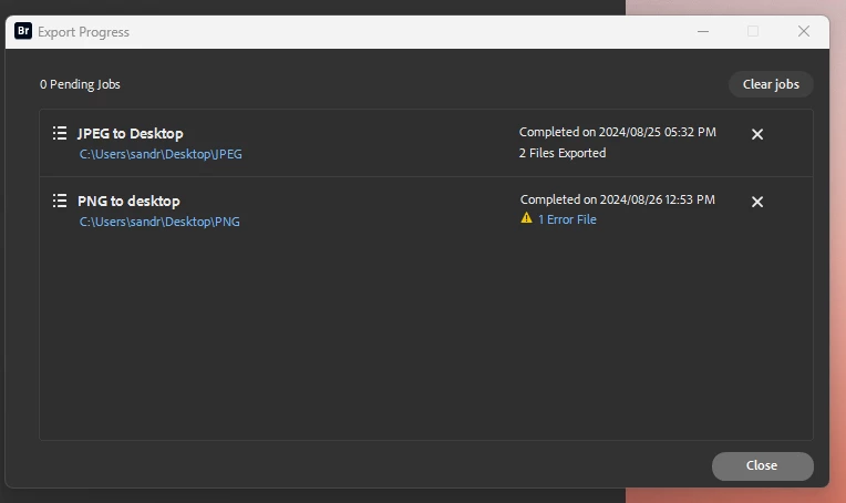 Amost all the time, when I want to batch export PNGs from files, it fails (see screenshot) it can happen with a whole selection of files, but also with just one. I noticed that whenever the files are on the biggest side, it will get worse. The error report says "unsupported format.