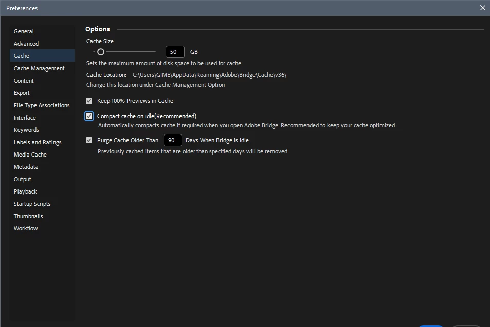 And... it asks on every start, even if I did not changed the folder and even if I clicked on compact cache 2 minutes earlier without doing anyhing else but close and open Bridge.