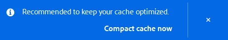 If I turn it on it alwys displays a modal window with a question if I want it to compact the cache and waits for my interaction (!!!) to click on the X (close) or the "compact cache now" button.