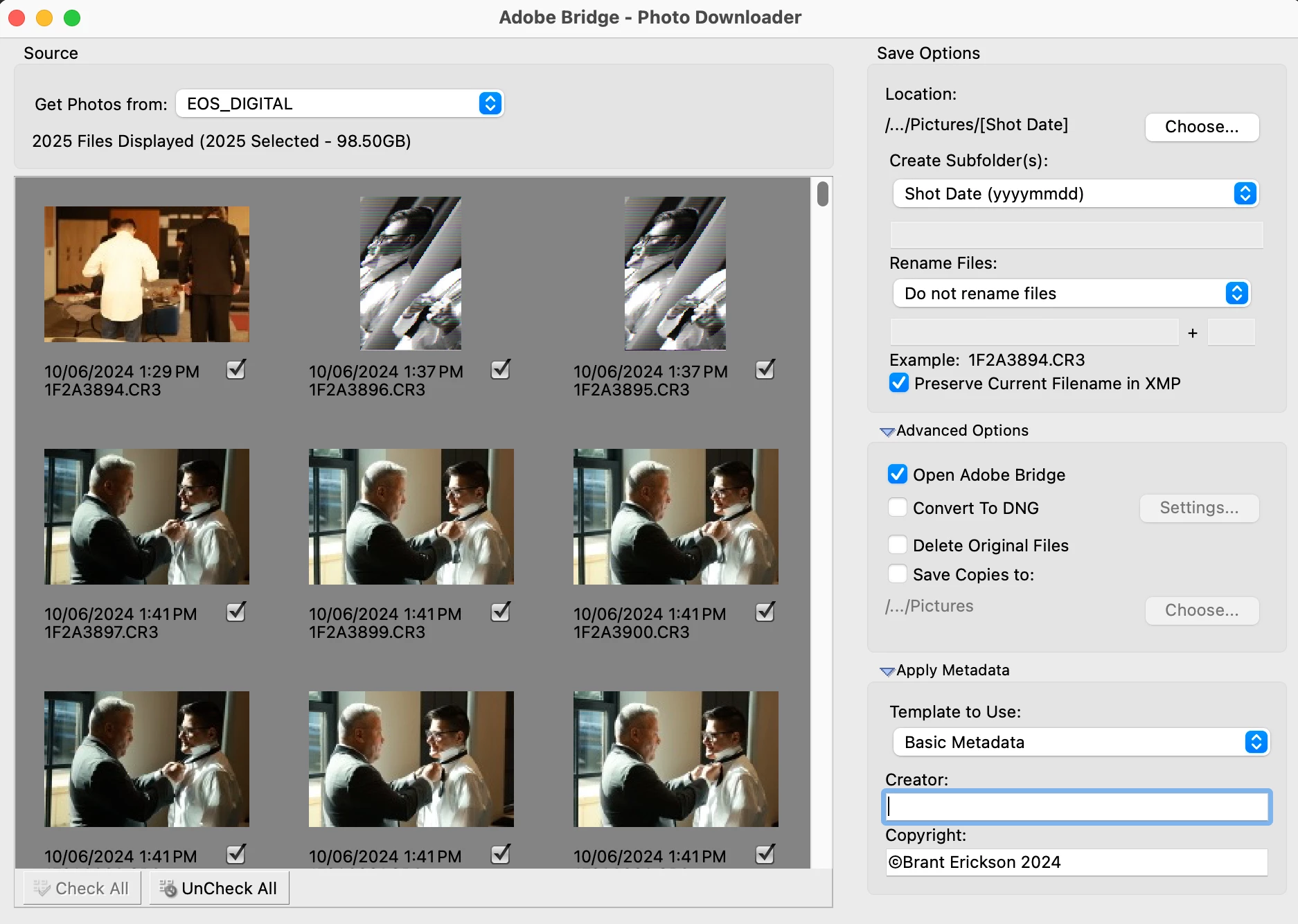 I’ve been having a lot of issues with Photo Downloader recently. First when I open Photo downloader it will see the card but not files. I’ll refresh it, then It will show 328 files. Then I refresh again and it will show 787 files. Another refresh 1351 files, another refresh then it will show 2025 files. But oddly when I use finder and select the folder and go to get info it will say the folder contains 2026 files. I don’t see any text files in the folder just images, so I’m not sure if one Image is missing? The same issue has happened several times. Needing multiple refreshes to find all the photos, but even then one less file in Photo Downloader than what Finder is telling me is within the Folder. Not sure what’s going on here… I also see first two images are looking wonky, like similar to rolling shutter but not that... I had Mechanical shutter enabled and it could look like the others. the first two photos are black and white when they should be color.. This is just the preview of the files in Photo Downloader though. Finder displays them just fine though, so it's definitely Photo Downloader. Also I let photo Downloader sit after the last refresh while I was thinking about what the issue might be, but then Photo Downloader Crashed. So I'm really not sure what's up. Adobe, please fix this!