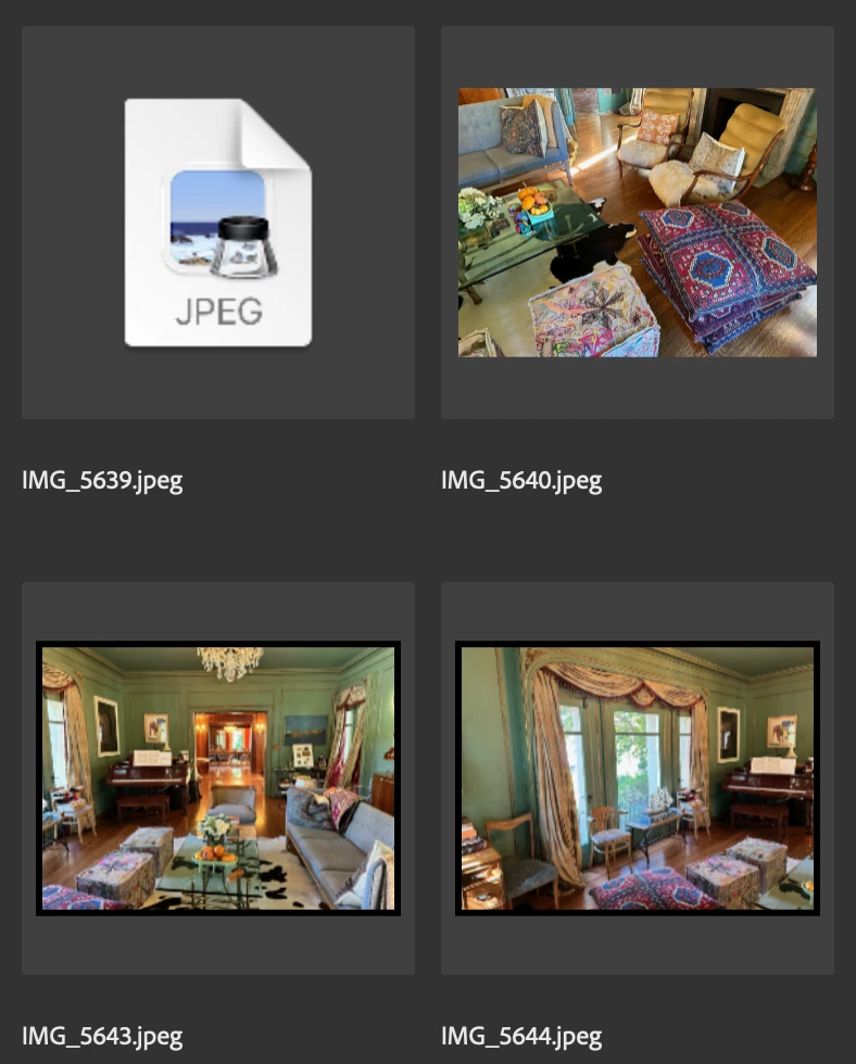 JPEGS exported from iPhoto are not loading in Bridge. Some load but most just hang either with the white jpeg icon or with a black border around it. See attachment for reference. If I click and select the photo, then move off of it, it will load the preview. Have never had this issue with other files or jpegs but just started exporting from iPhoto workflow and running into this issue.