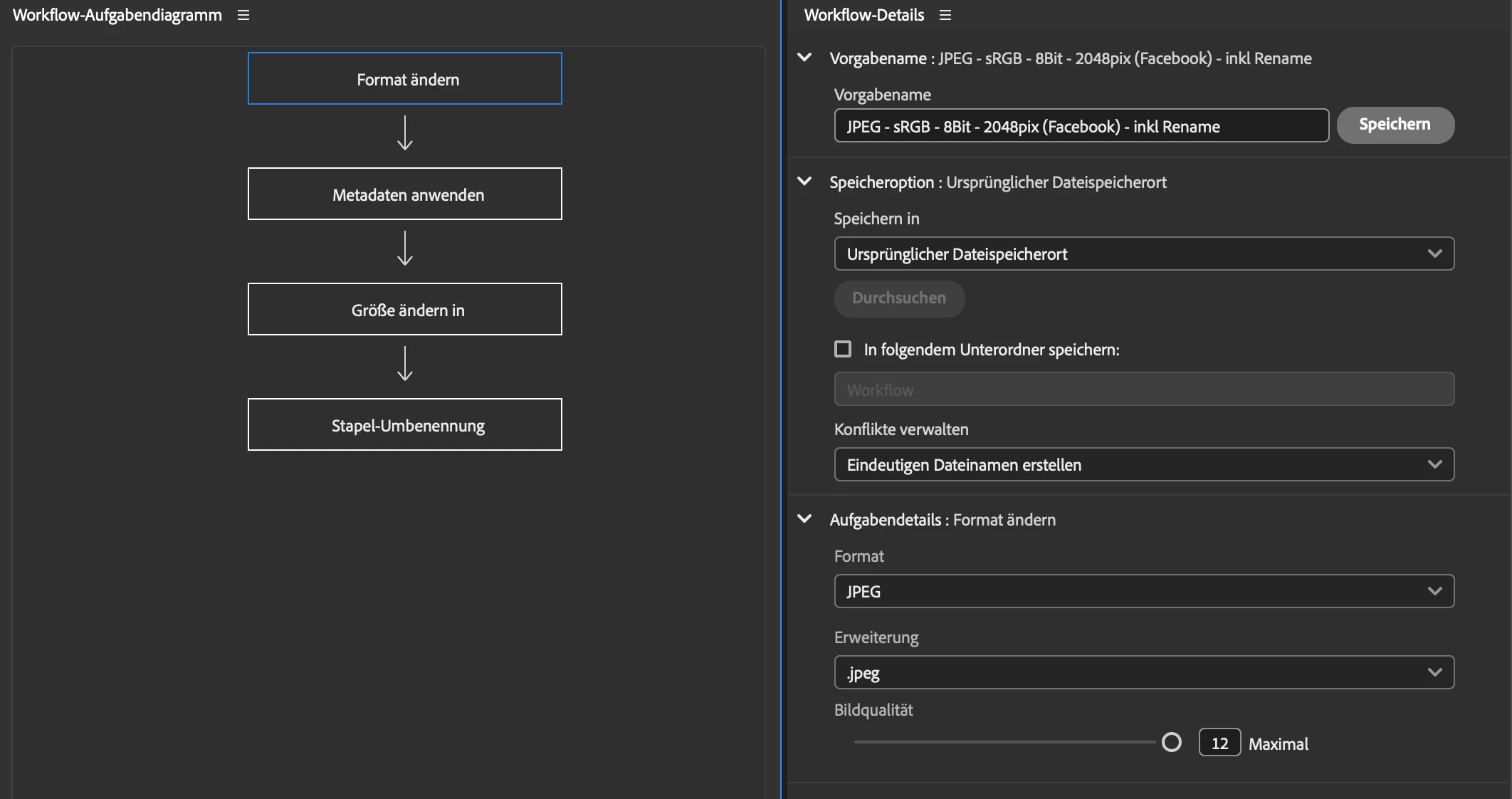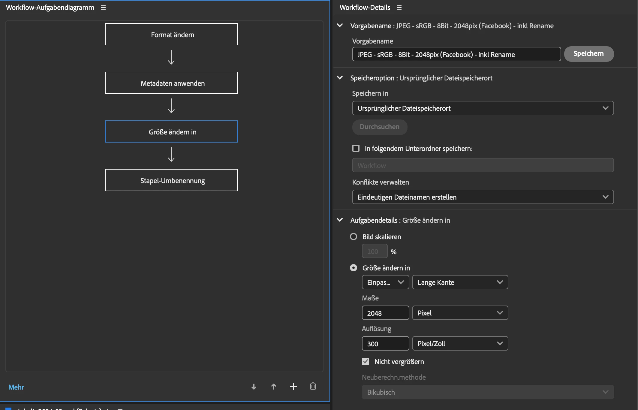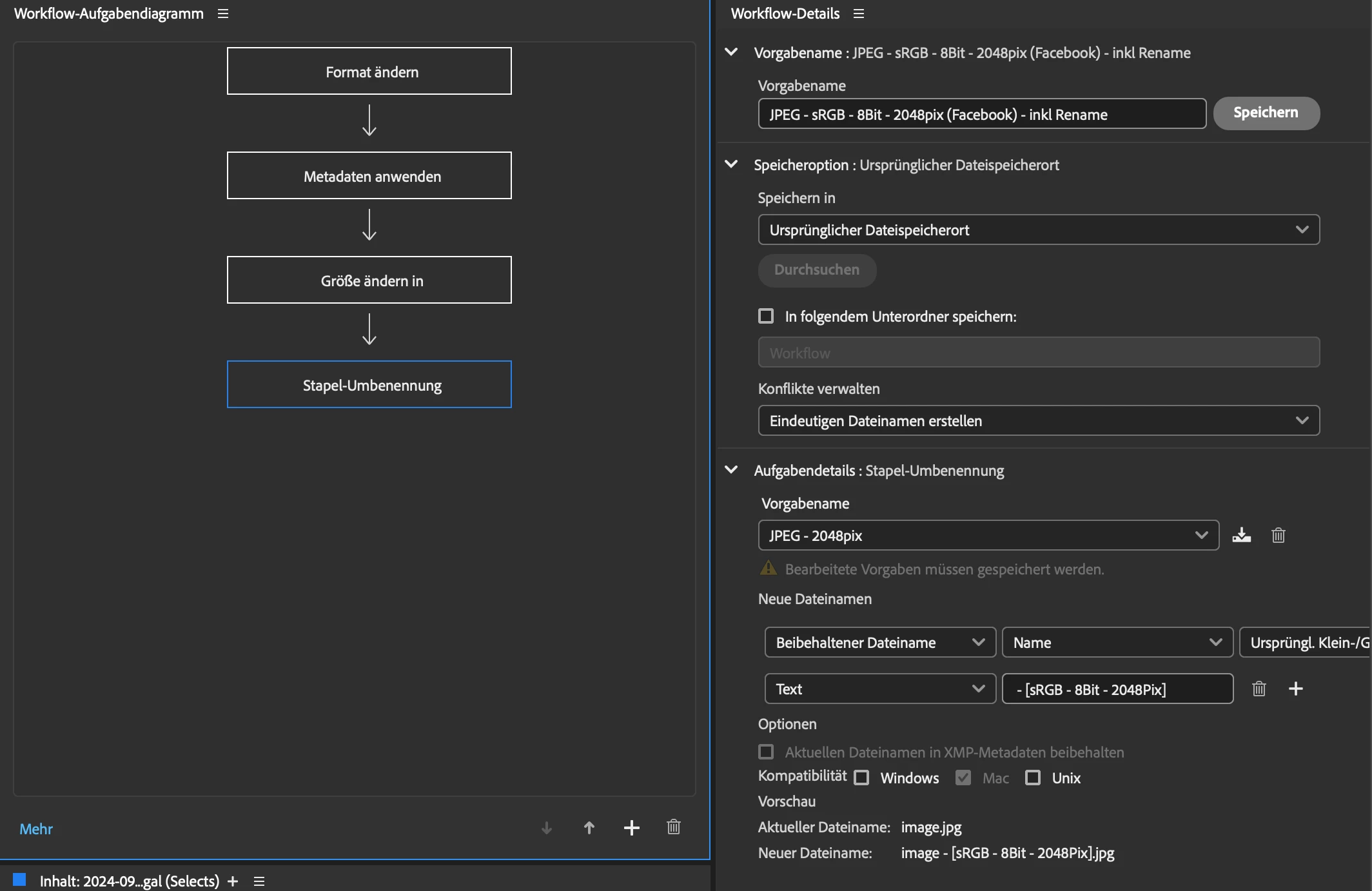 2. Create a workflow to export .JPG with 2048pix