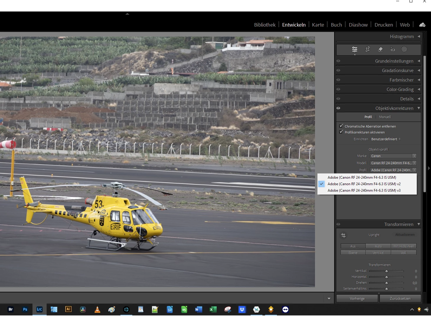 4. Select "Profile": Adobe (Canon RF 24-240mm F4-6.3 IS USM) v2
