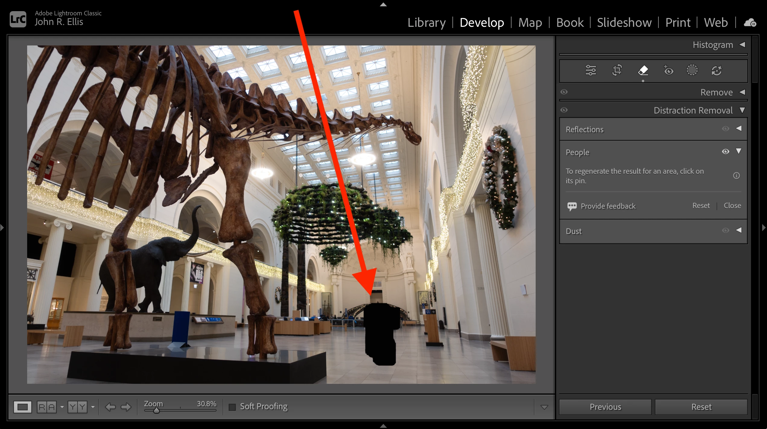 2. In Develop, select Distraction Removal > People. Observe the group of people and their reflections are selected: