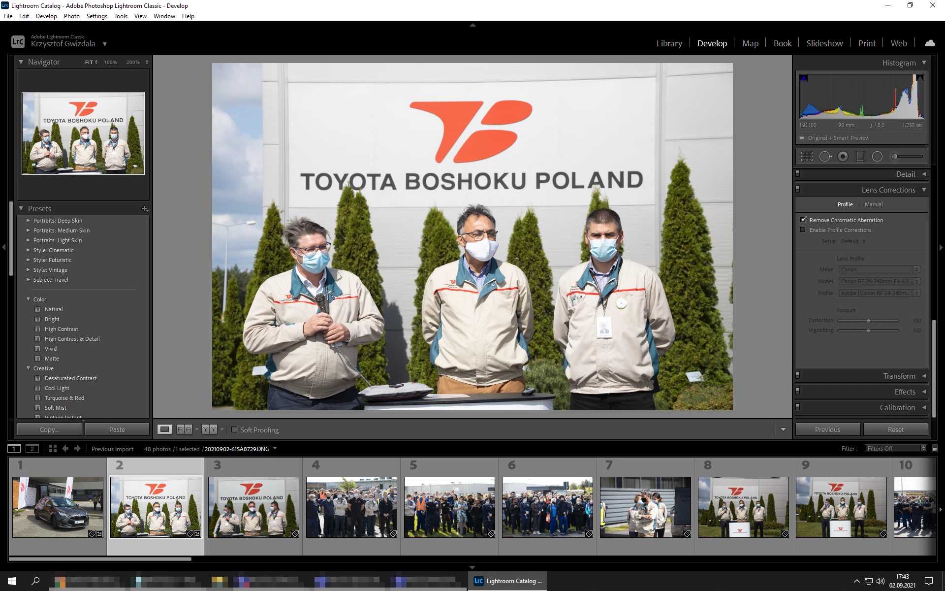 The next step I took was to use the R5 (FW 1.4.0) with the 24-240mm (FW 1.0.6).  This time the import was from a CFExpress card.  Again the same issue, though the distortion on the borders was less pronounced.  No other lenses on the R5 (my main camera) have issues as I use it very frequently.