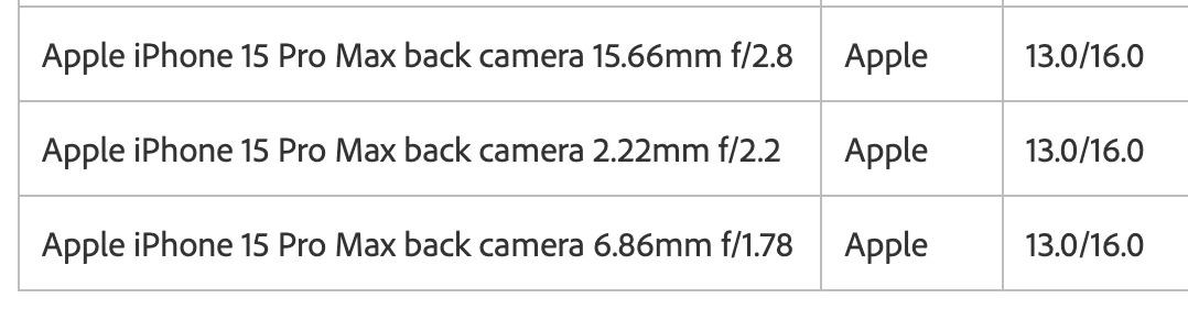 P: Lens profiles for Iphone 15 Pro Max main back camera fail due to mismatching focal lengths