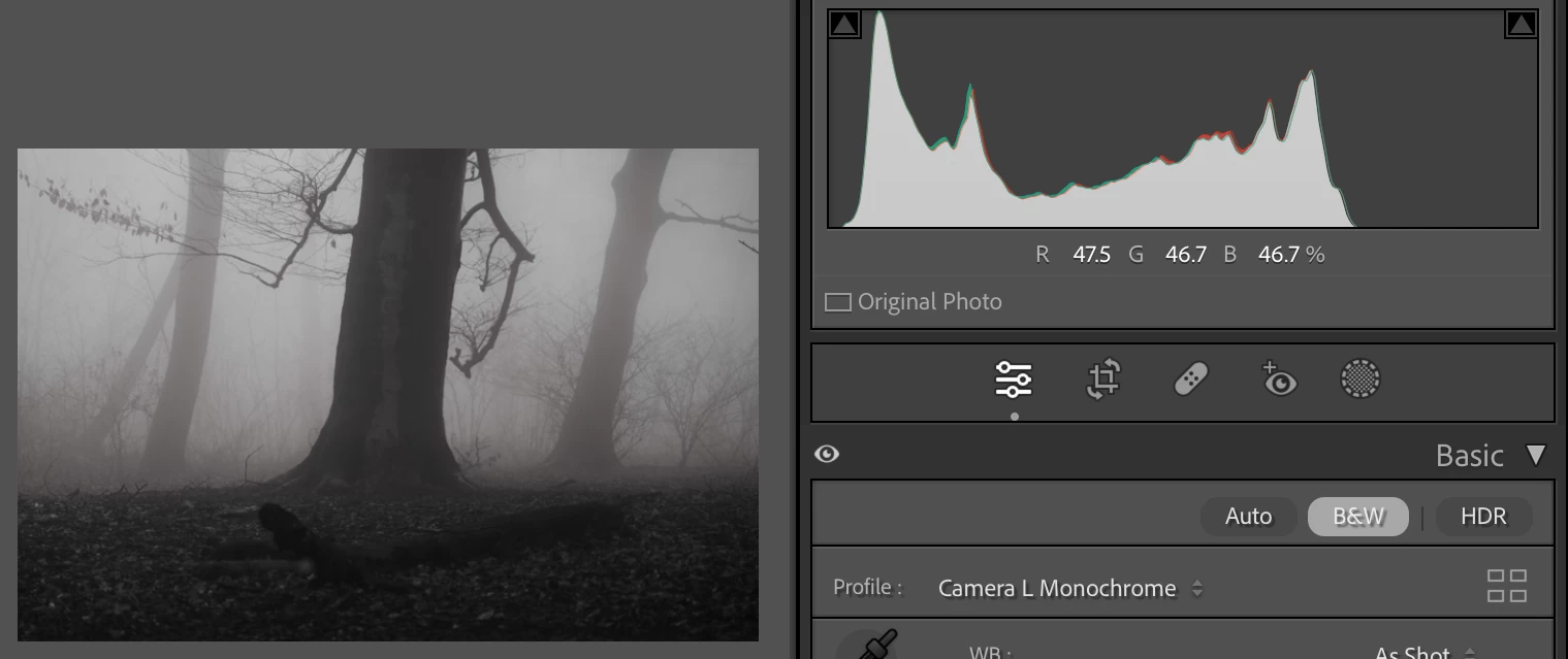 I'm a Panasonic Lumix S5 user and I tend to prefer the camera matching profiles instead of the Adobe ones. I noticed however that when I use the camera matching monochrome profiles they all have a weird red hue mostly in shadow areas and the histogram confirms this. The problem is not present with Adobe Monochrome and is very subtle. I attached an example where I increased the saturation to make the red hue issue even more visible.