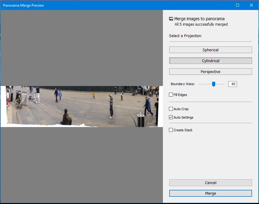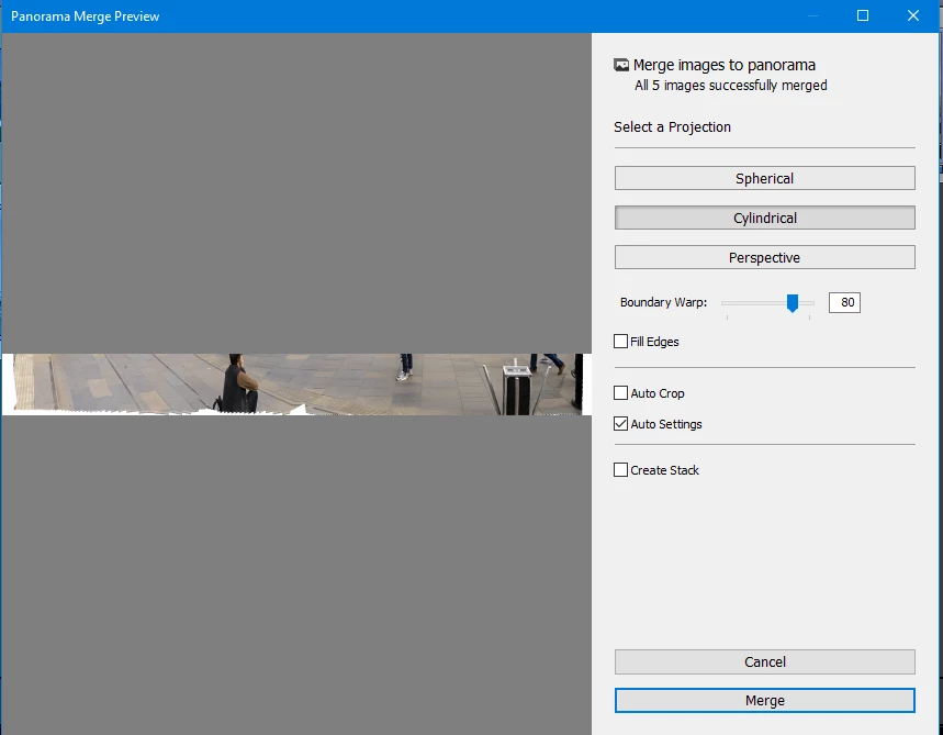 P: Using Boundary Warp when Merging to Panorama fails