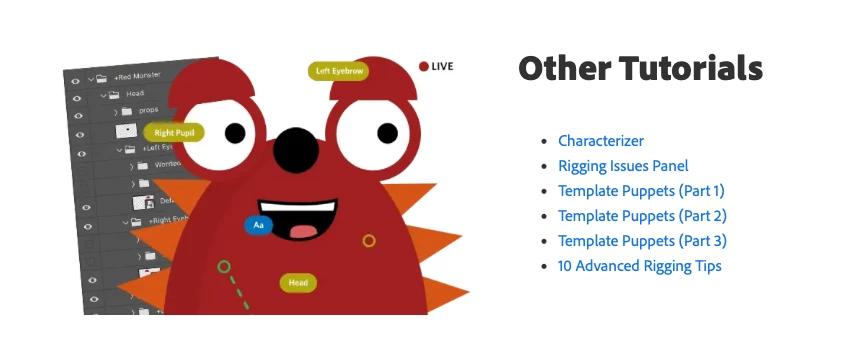 I'm noticing that some of the links on the tutorials page at the bottom are erroring out. I'd like to check out advanced rigging!
