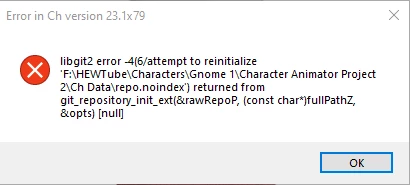 I had a project open in Character Animator while I was working on 2 puppet files in Illustrator. This crashed Character Animator. I couldn't reopen the project so I deleted the project file to start again. Now I can't create a new project without receiving the above message (which means I can't creat a new project). I've tried reinstalling Characte