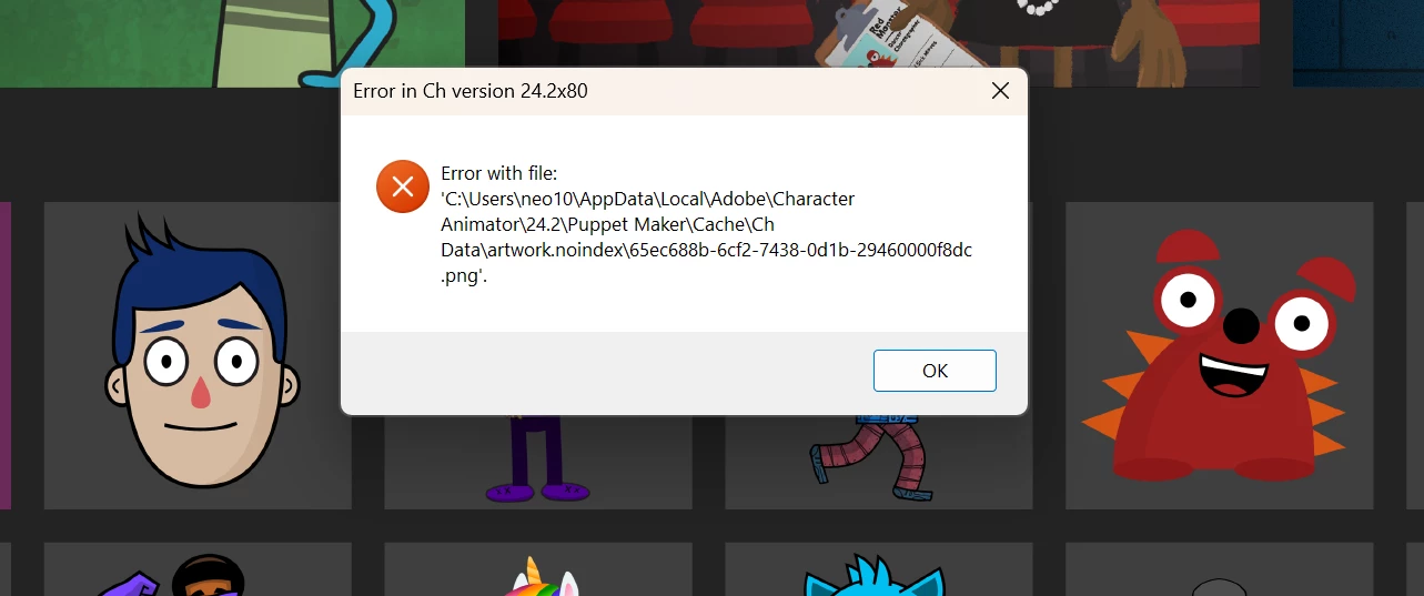 I can't run the puppet maker. It gives me an error. I've tried reinstalling it but it didn't work out. Does anyone have a solution for this?