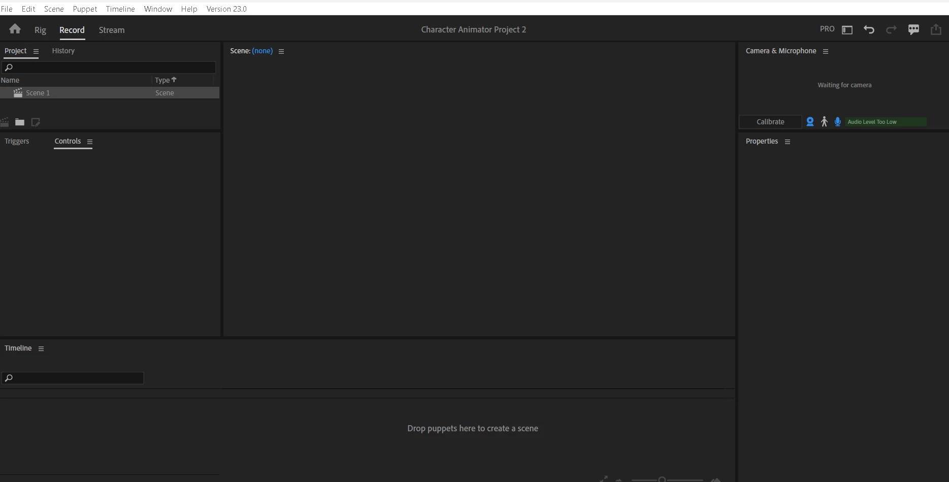 Character animator says "Waiting for Camera" and doesn't play my mic's audio