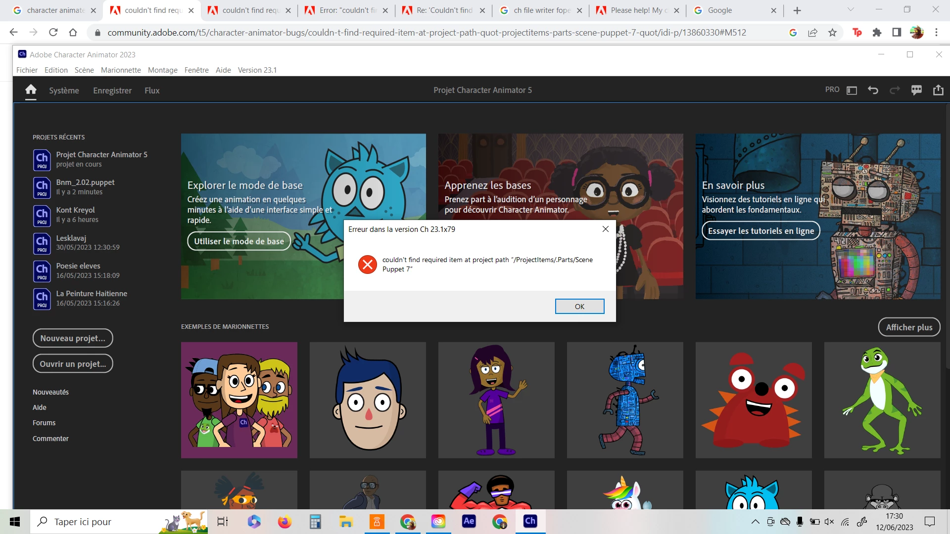 couldn't find required item at project path "/ProjectItems/Parts/Scene Puppet 7"
