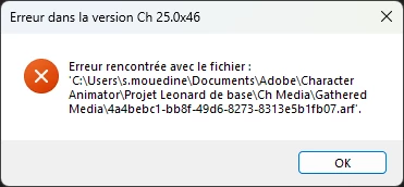 I’m unable to use Adobe Character Animator—I keep getting error Ch 25.0x46.