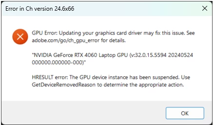 GPU HRESULT Error in ChA with RTX4060 Laptop