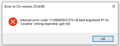 Internal error code: (1109000933:370+8) bad argument #1 to 'Localize (string expected, got nil)