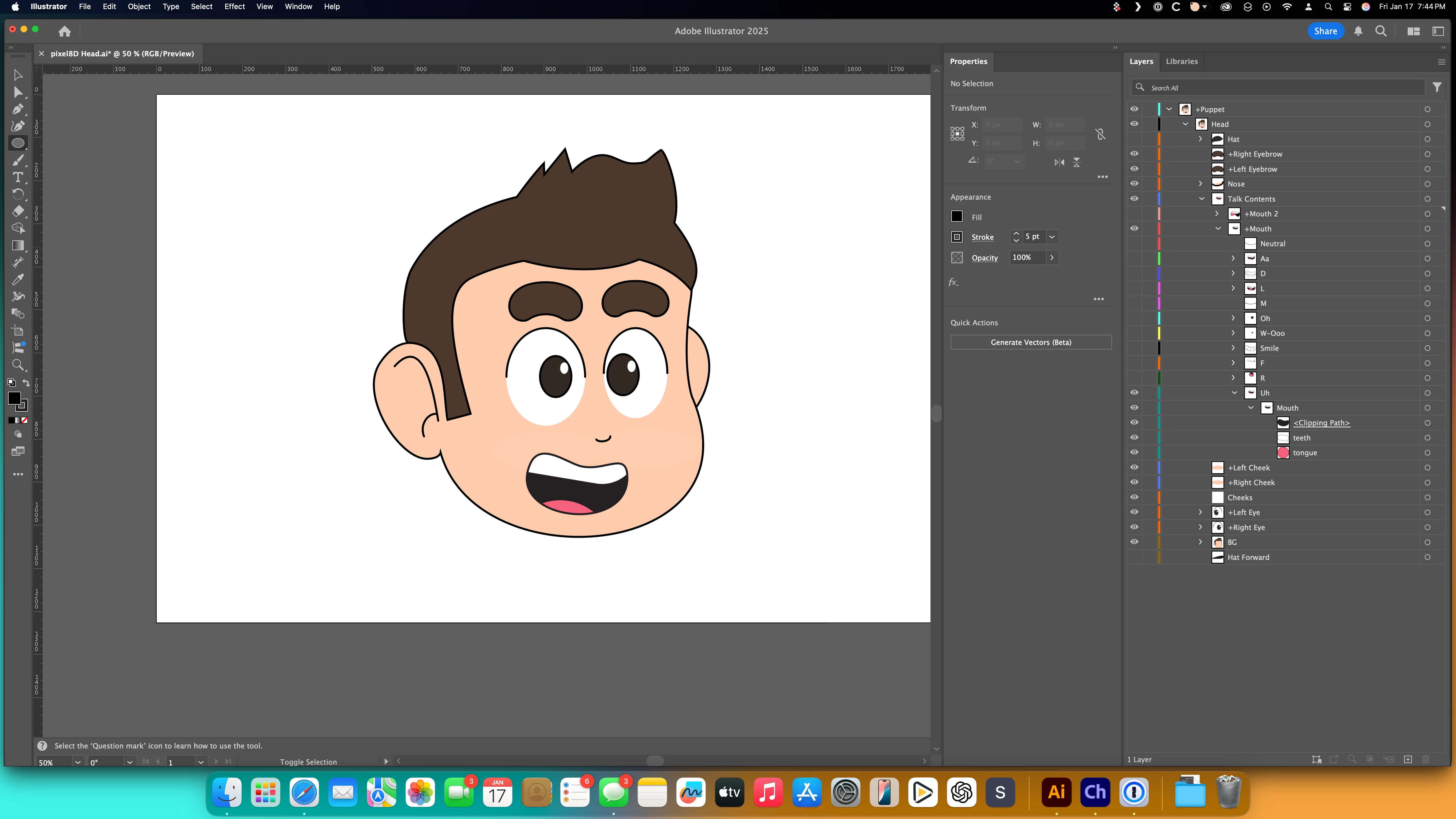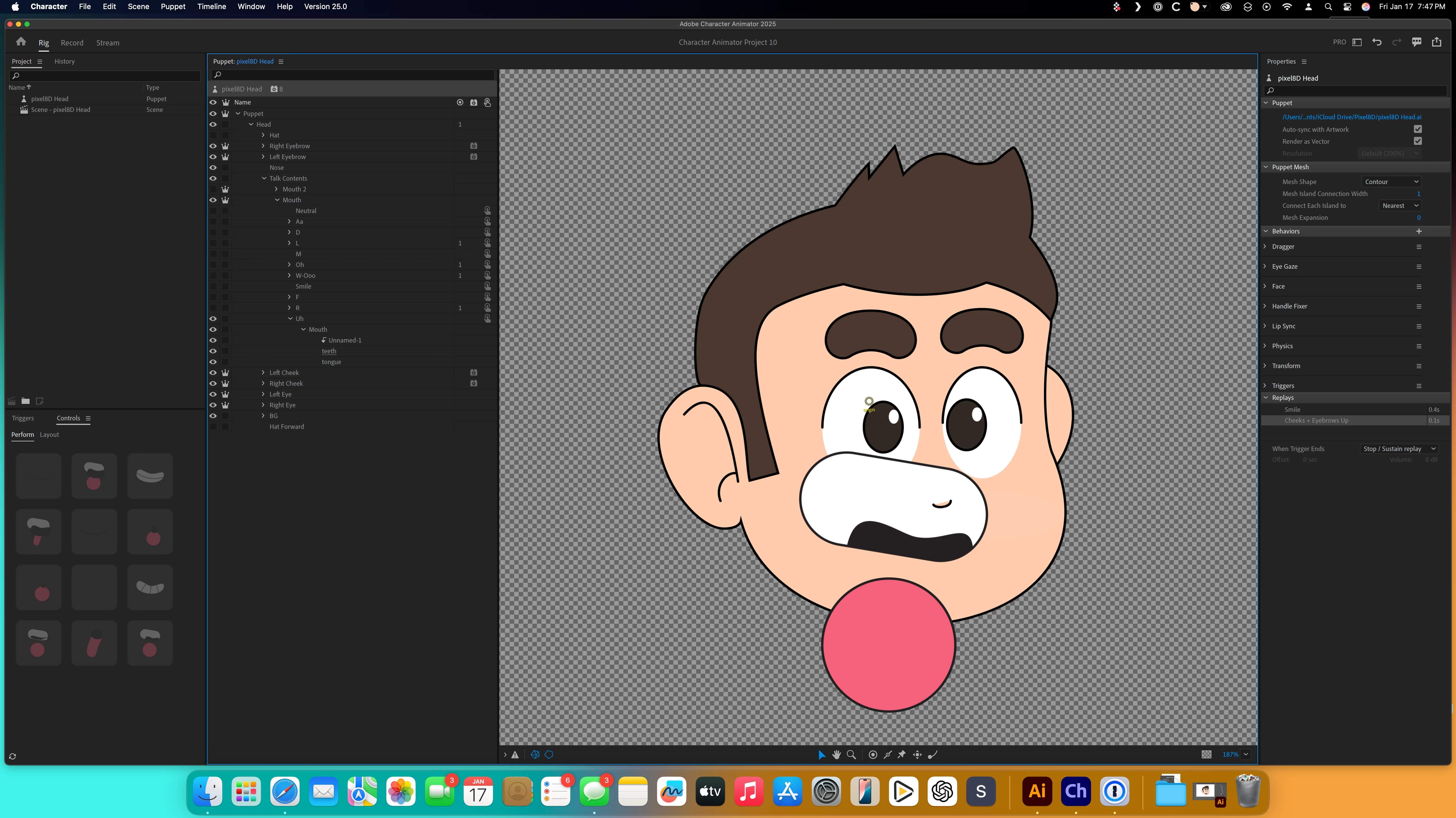 Pulling up an old character file that has clipping masks for each mouth viseem. I tweaked one of the mouths and when syncing back to character animator the mask is now gone.