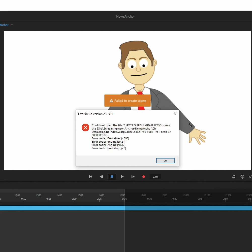 The latter two both suggest that Character Animator is getting errors reading and writing files in the folder where the project is located. What kind of drive is drive E? If it is a network mounted volume or external drive, could you instead save your project on a fast, local disk instead? You'll get much better performance that way as well.