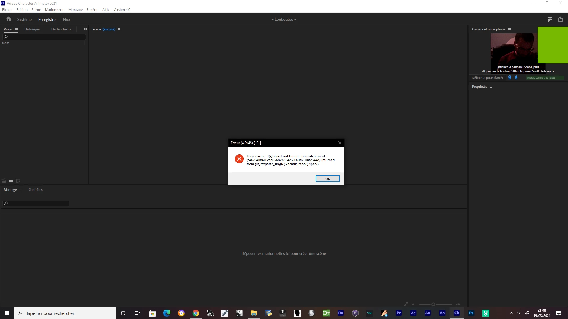 Everything was going very well during his last weeks. But in the morning I open Character Animator and I get a message: "Cannot open project << F: //ANIMA/.../Ch Data / repo.noindex / >> If it is on a server, copy it to a local disk and open it from from this location. " I have weeks of work on this project. Please do you have a solution for me? I beg you!