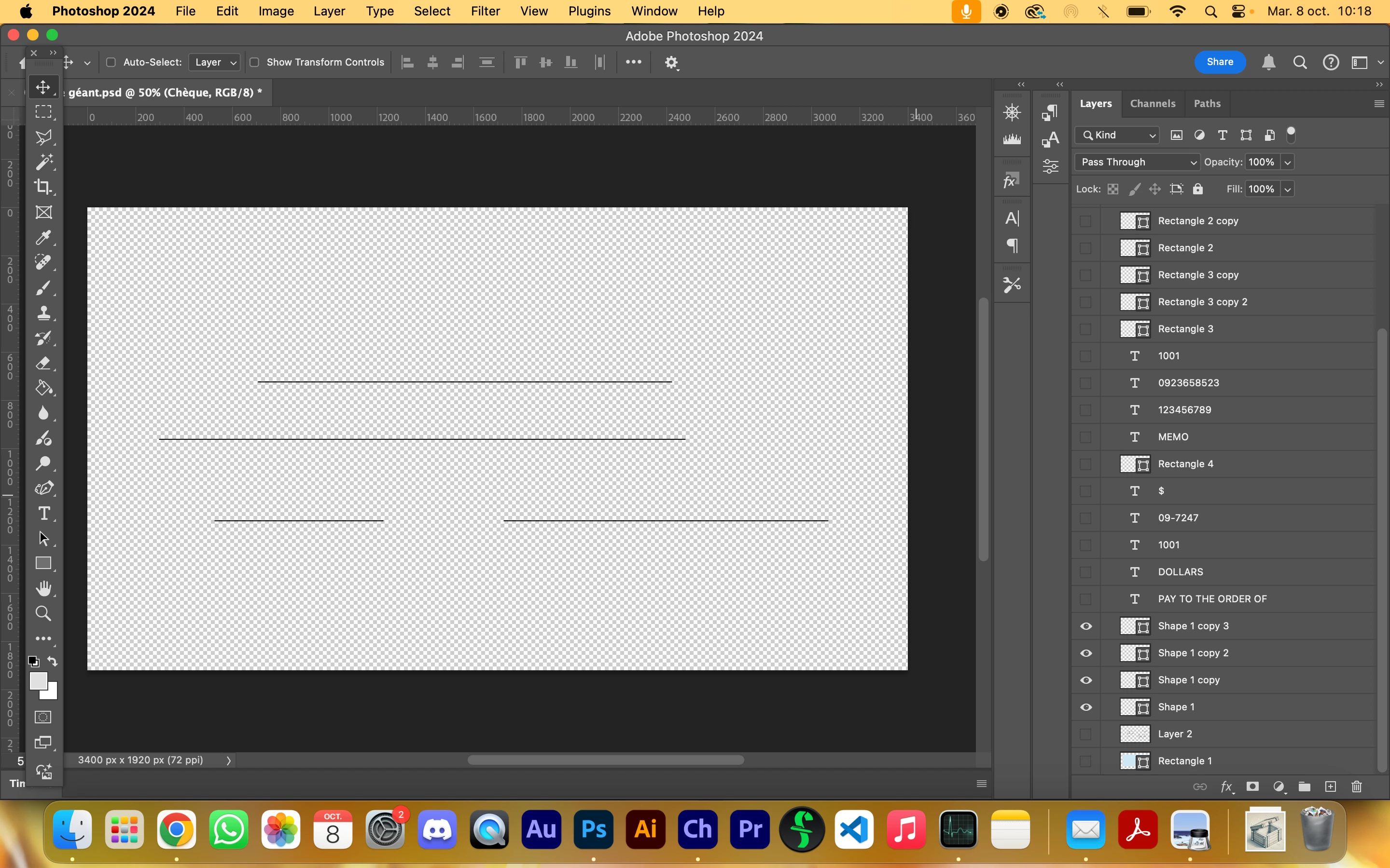 I uploaded several screenshots of an obvious fake paycheck, the first one on character animator if the rasterized puppet, the second is the layer as I built it with the text, shapes and rasterized layers on psd. As you can see, some shapes (systematically lines drawn via the pen tool) aren't showing up.