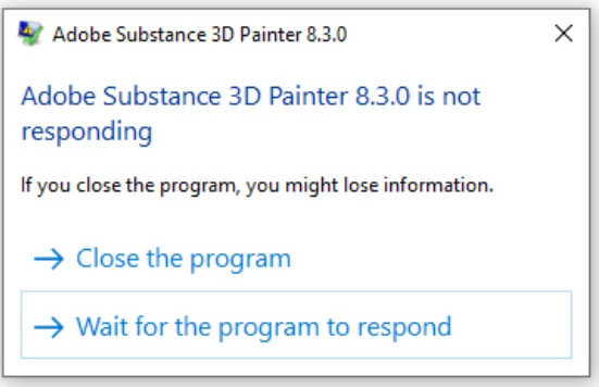 Adobe substance 3D painter 8.3.0. is not responding after update installation