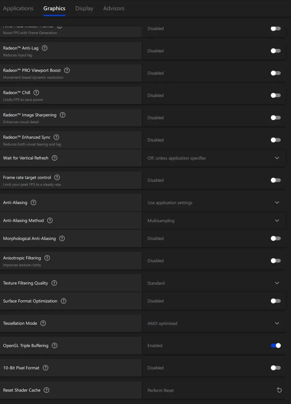 This is in Pro 24Q1 drivers. Under the Global graphic setting, tried setting it in the per application, it didn't work. It has to be global setting. I might test on the latest Adrenalin driver as well.