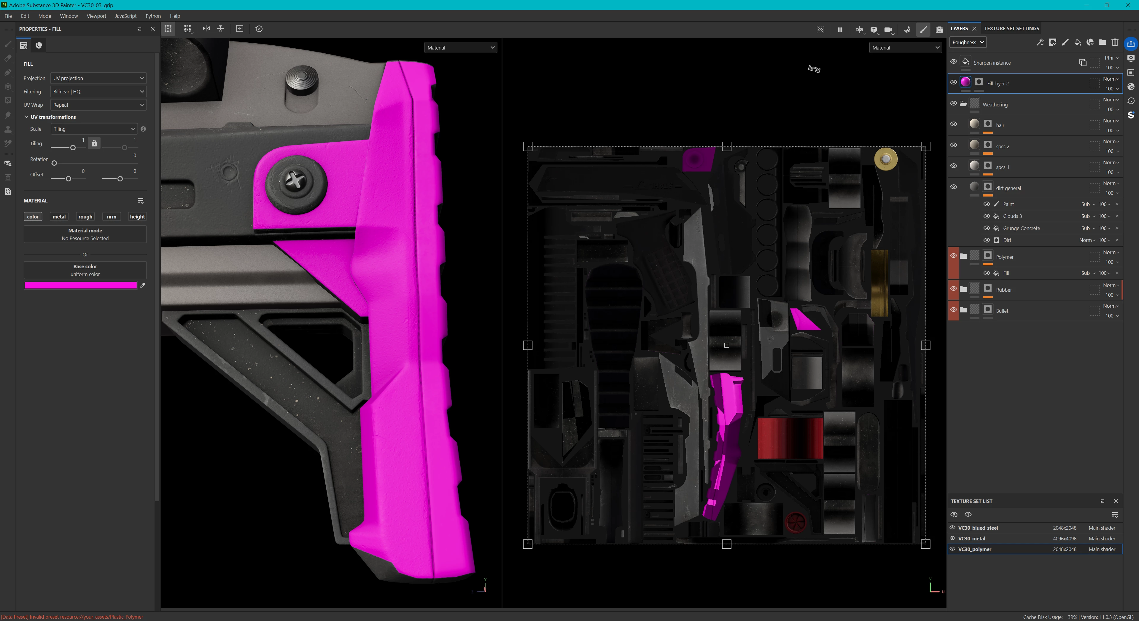 Using a scratch stencil, I see that some scratches show up properly oriented, some seem misaligned, and some seem tiled (even when tiling is disabled).