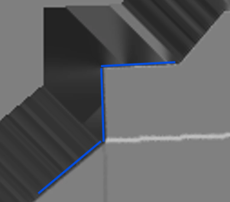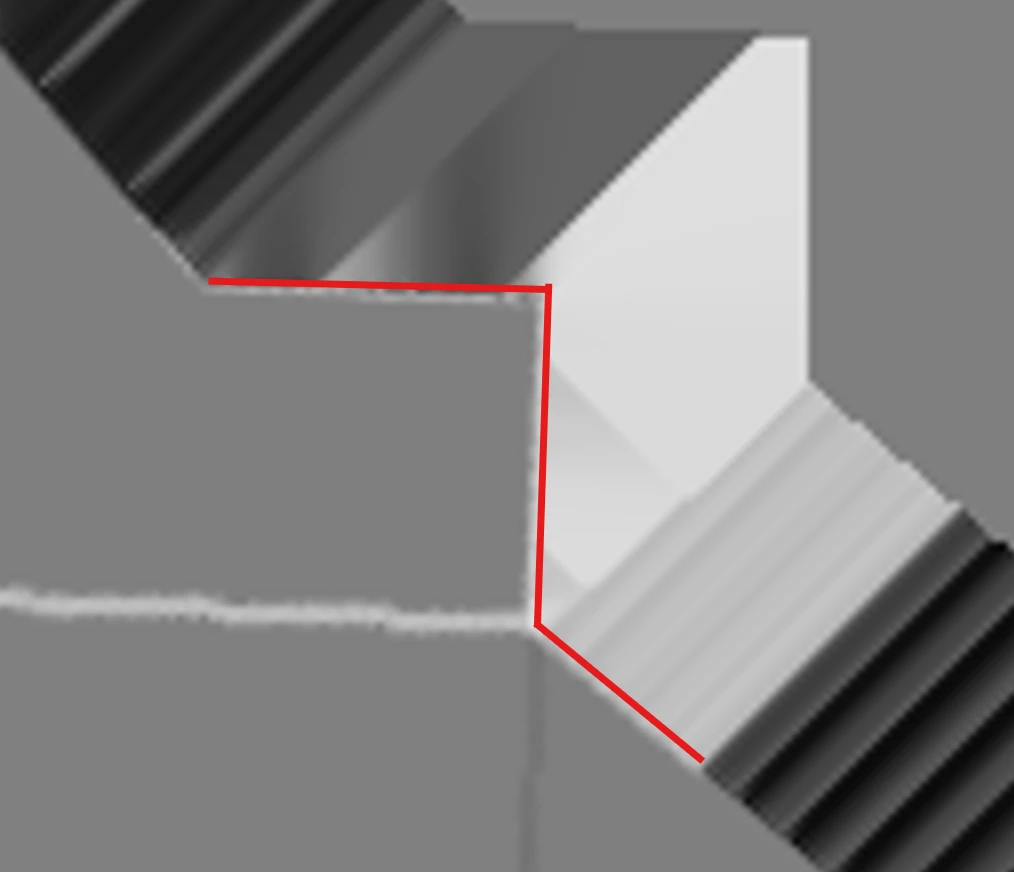 This approximates the edge of the face on the other side, the curvature lightening is much less or non existant.