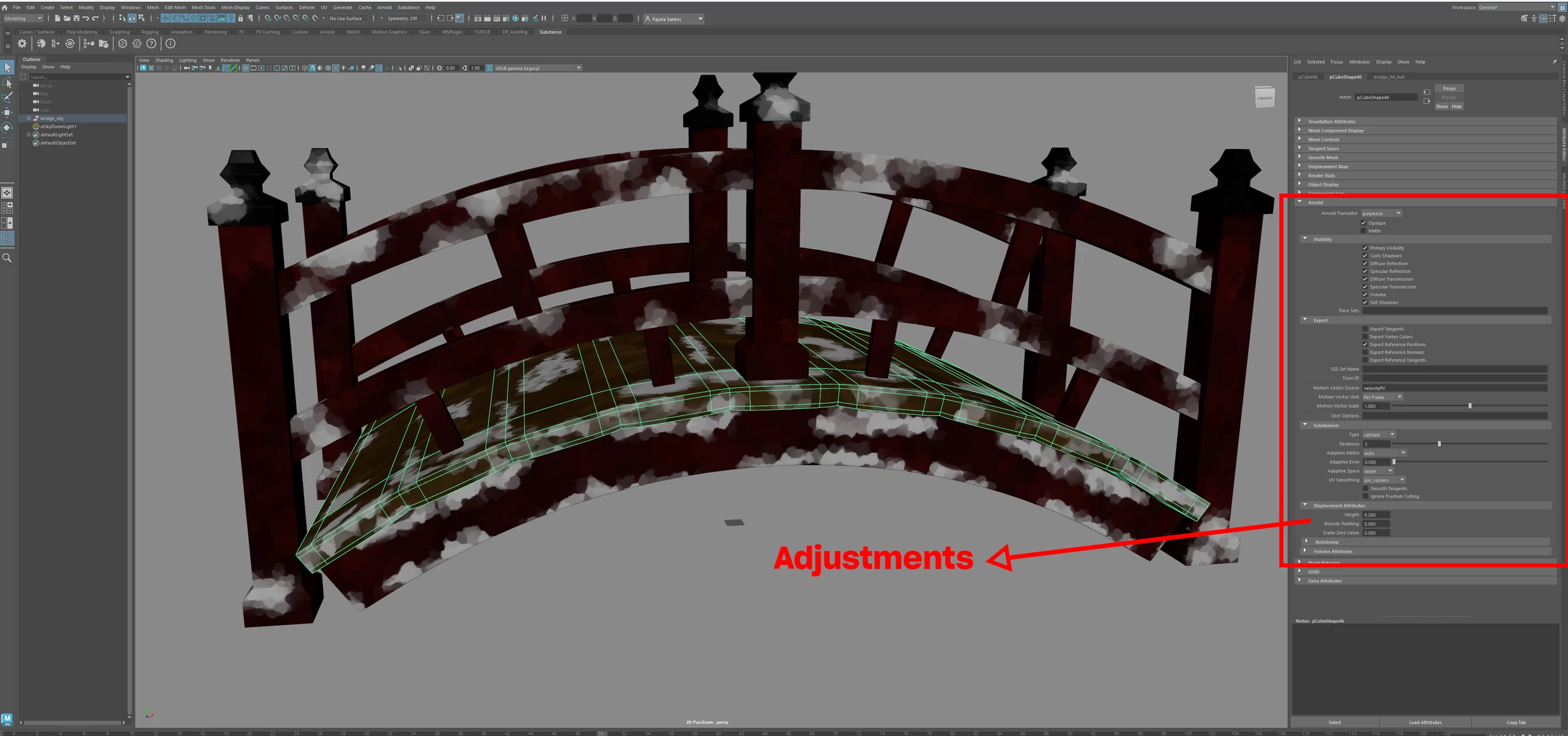 3) Adjustments in Arnold (Subdivision & Displacement Attributes)