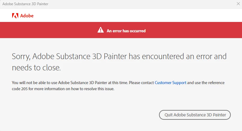EEthan38881706av36ParticipantForum|Forum|1 year agoSeptember 14, 2024I get the reference code 205 when launching painter, and it forces me to quit the program.Forum|Forum|1 year agoSeptember 14, 20241 reply138 viewsBugs & Crashes