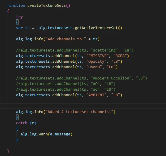 JS Scipt... unable to add Ambient Occlusion channel ... possible bug in JS API?