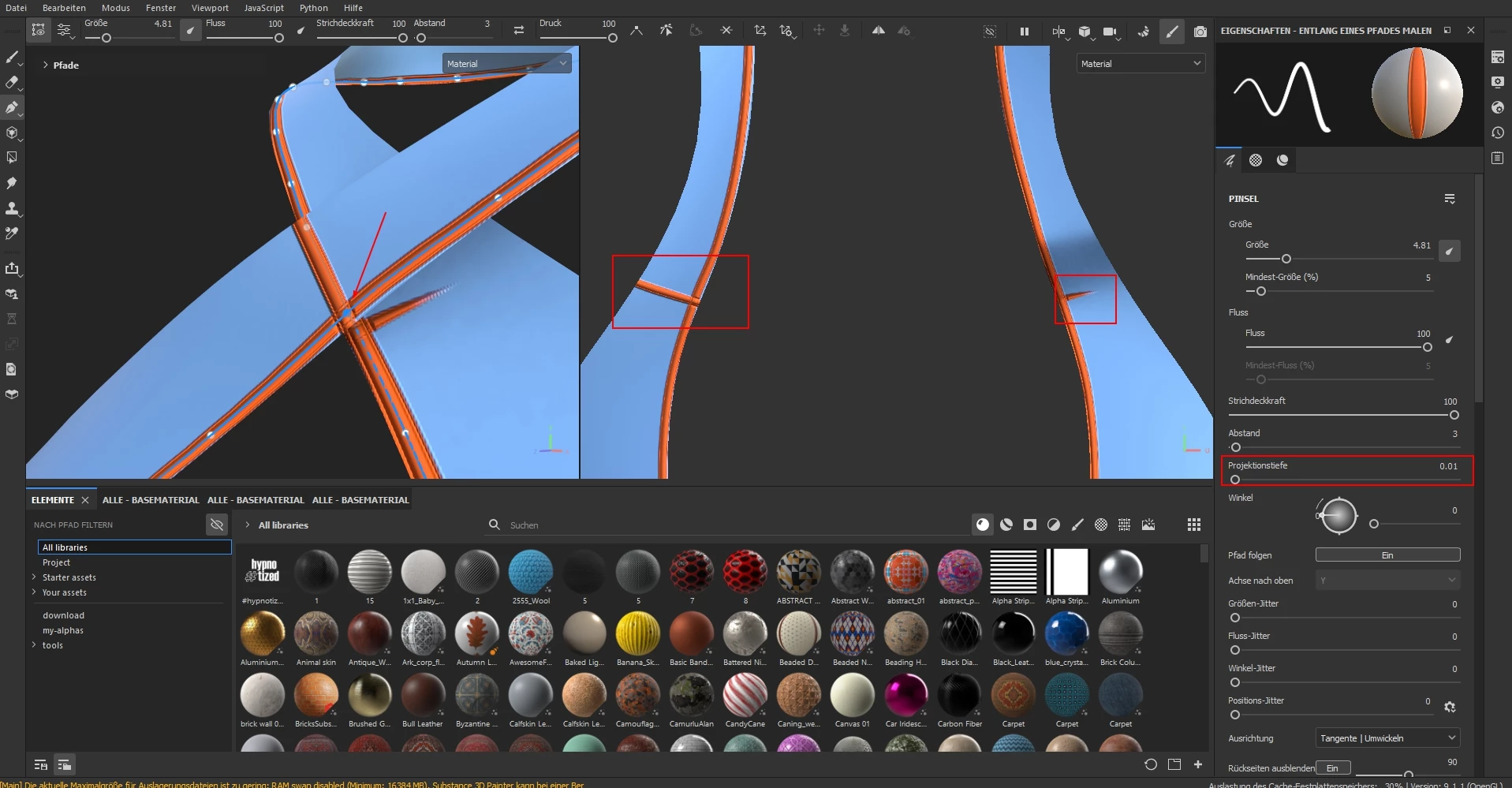 someone an idea to solve the projection deep Problem with the Path Tool ?