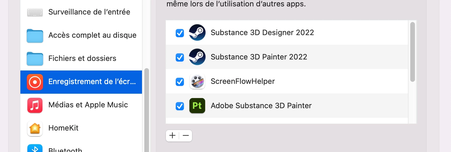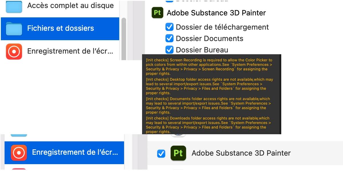 I'm using the Steam version of Substance Painter on a Mac Studio with Monterey 12.4. Each time I launch Substance Painter it asks me for permissions to record the screen or to access some folders, even after giving those permissions, as you can see on the screenshots. I can't use the software because of that. What should I do ?