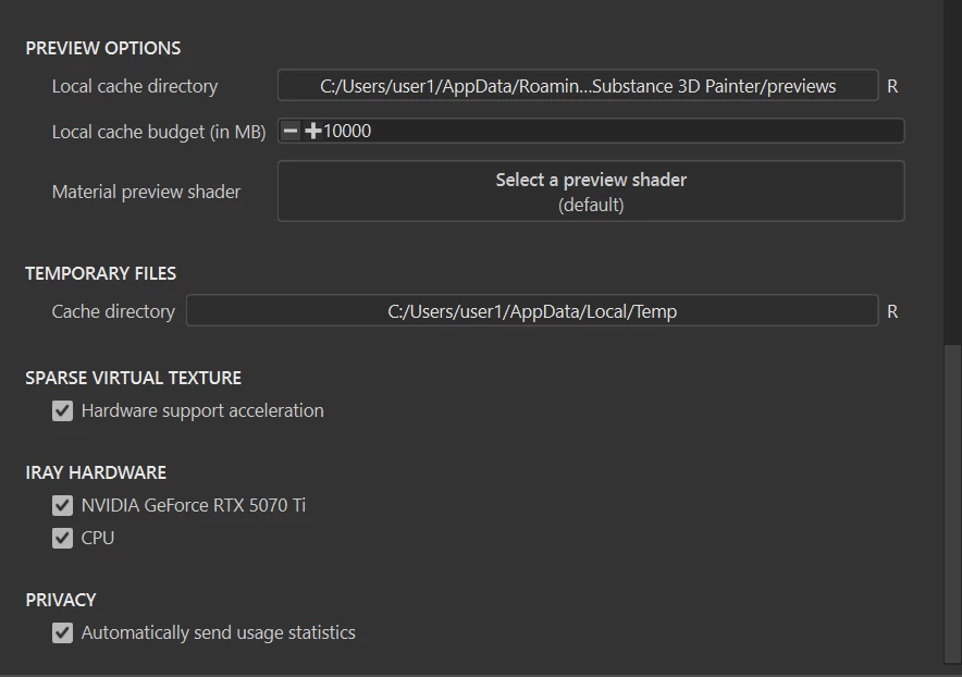 I tried disabling "Hardware-Supported Acceleration" in Edit > Settings > Sparse Virtual Texture, but the issue persisted.