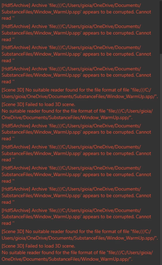 I have sent you the log. However, I have encountered a new related problem. As I mentioned yesterday substance painter allowed me to open it when run as administrator. I opened it up this morning to continue working on this process and am met with the image below. My file has been corrupted, making working on substance painter even when run as an administrator impossible.