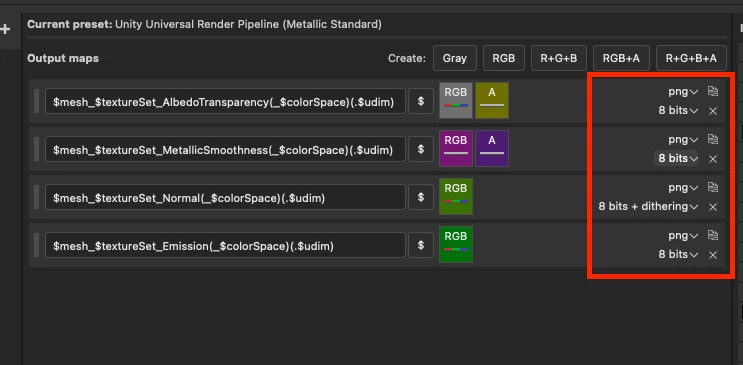The presets are very outdated for Unity and are unable to texturepack clear coat masks for Unity despite Adobe claiming support for Unity.