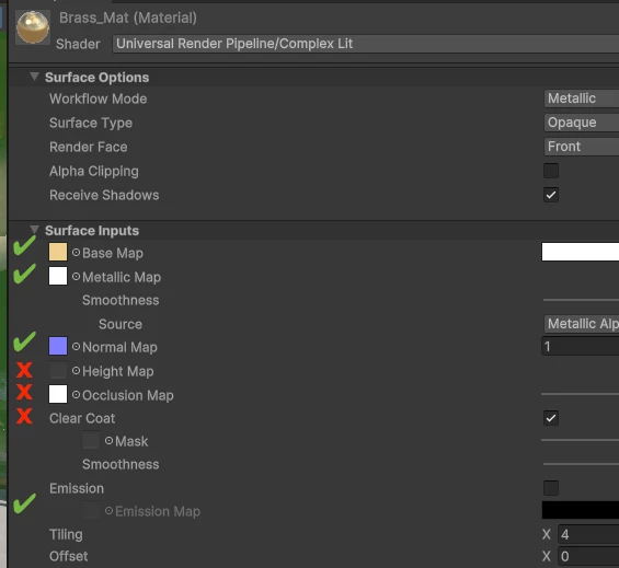 - Whats missing from the Lit Complex material (Clear coat, Occlusion and Height):