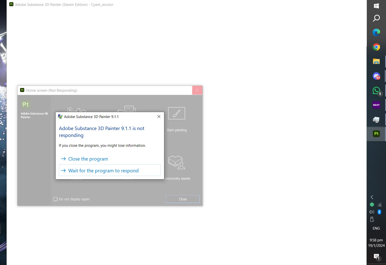 2 weeks ago, my substance painter 2024 (steam edition) was working as intended. however today (2 weeks later), I opened the program to start a new project and it kept crashing upon launch.