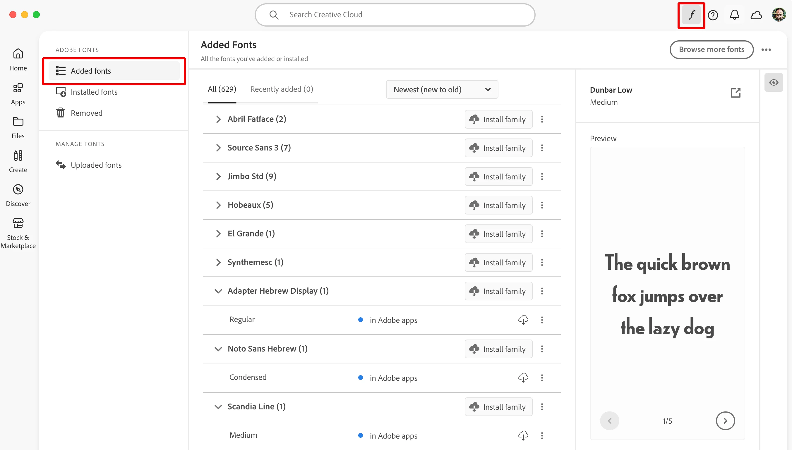Active font list