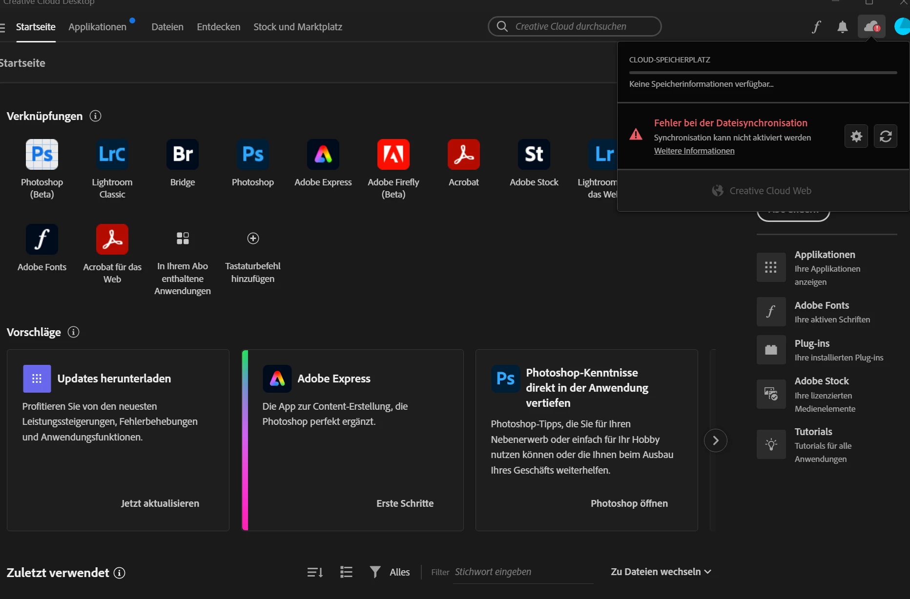 LLukas L.ParticipantForum|Forum|2 years agoSeptember 3, 2023Adobe Cloud not synchronisingForum|Forum|2 years agoSeptember 3, 20231 reply96 viewsI have this for atleast 2 weeks now and nothing I tried worked... not even the "help" from the Adobe support pages.I really hope that someone knows an answer.Thank you and with kind regards,LukasOthers