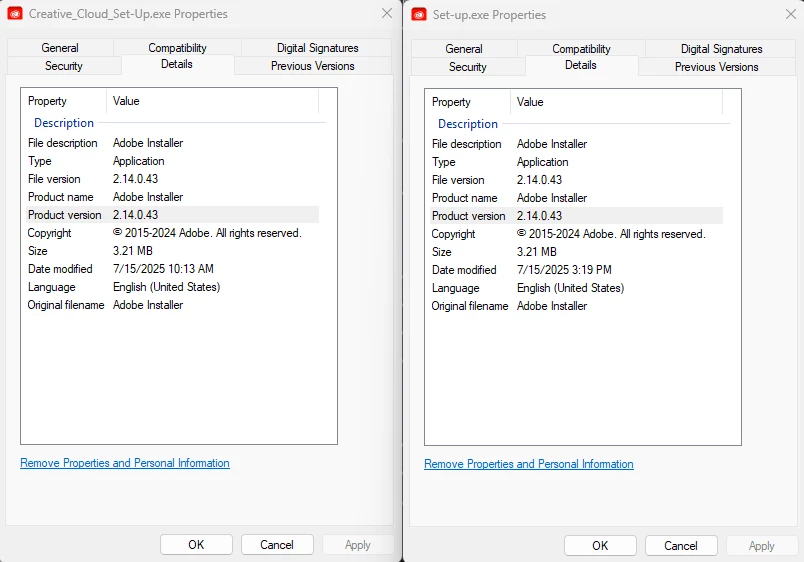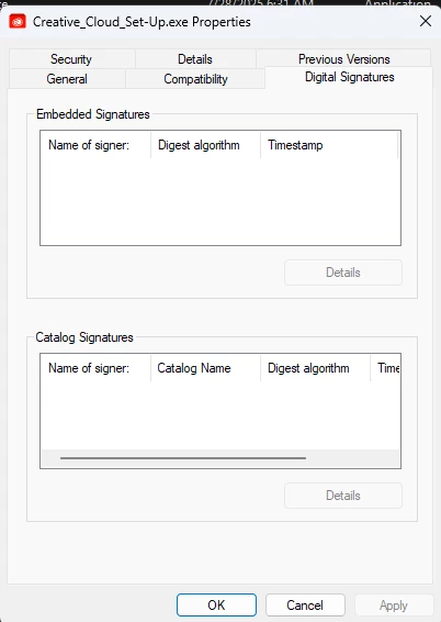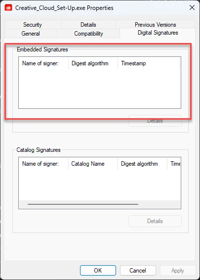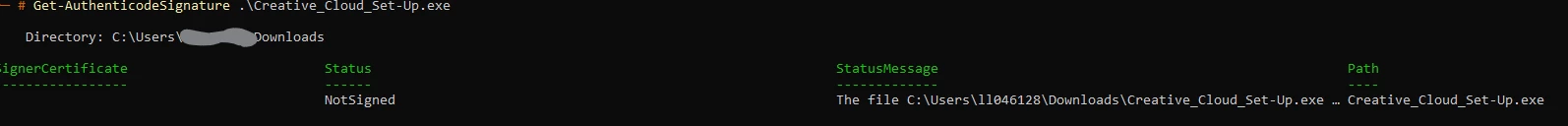 The installer executable for Adobe Creative Cloud hosted at Adobe Creative Cloud download does not appear to be digitally signed. Because of this, SmartScreen in Edge treats it as a potentially dangerous download.