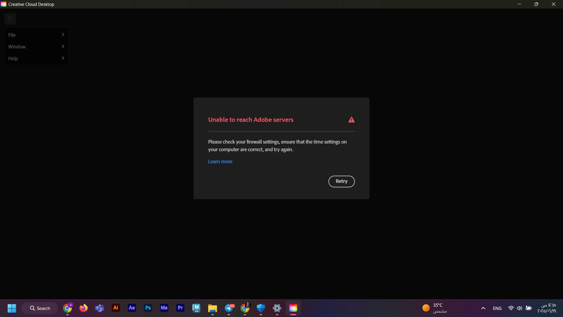 I’m having an issue with Adobe apps – I keep getting an error (screenshot attached), and while the apps themselves open and work, the AI features aren’t available and nothing seems to be connected to Adobe properly.