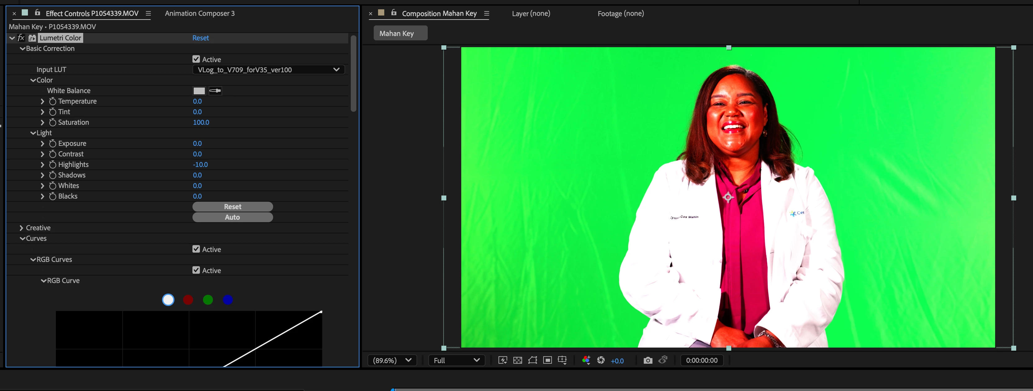 After Effects Log File with lut applied