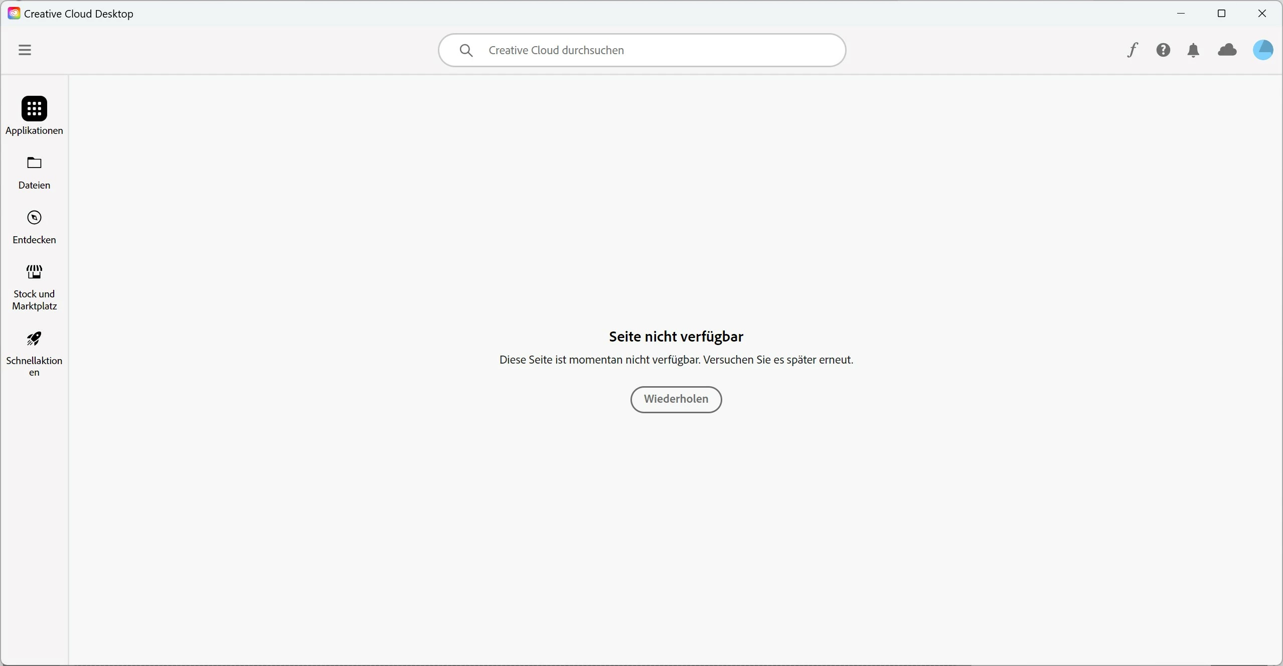 ich habe erstmals Creative Cloud Desktop unter Windows 11 installiert. Sobald ich Photoshop installiere, wird die Seite Applikationen nicht mehr geladen. Komplette Neuinstallation und Abschalten der Firewall behebt den Fehler nicht. Wenn die Standardinstallationssprache von Deutsch auf Englisch umgestellt wird, lädt die Seite wieder. Ebenso wenn Photoshop deinstalliert wird. @adobe Can you fix it?