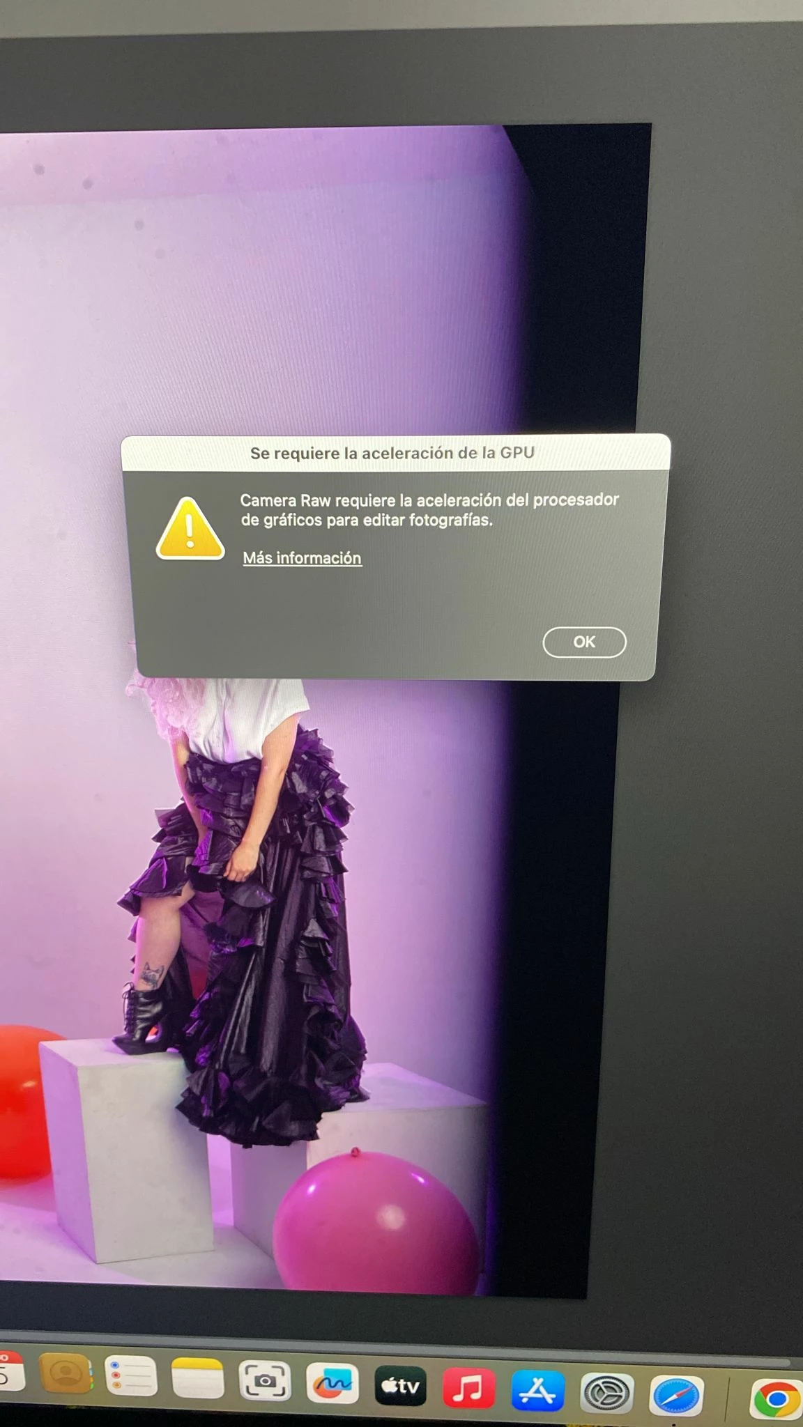 tengo un mac 2020 27 pulgadas, con ios sonoma, con 64 de ram 4T ssd y una grafica radeom 580x 8G. Desde que instale el panel de retouch4me, ha dejado de funcionar camera raw 16.4 por no detectar la aceleracion grafica. He desisntalado todas las aplicaciones y reinstalado pero sigue sin detectarlo. en photoshop en preferencias graficas si lo detecta y esta en verde. Pero camera raw nada. es desesperante ya que ayer funcionaba bien.