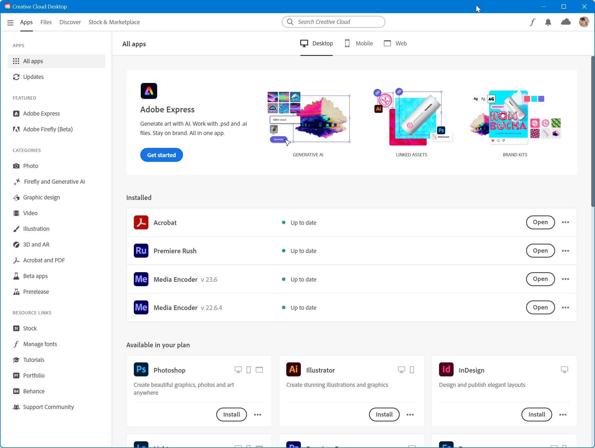 but again, i recommend just installing over your current installs to get the cc desktop app to recognize what's already installed on your computer.