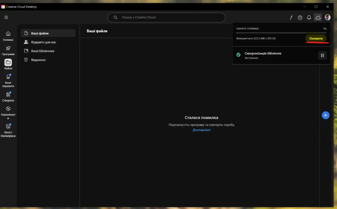I saved several documents to the Cloud from my work PC (Win10) and would like to open them from my home PC (Win10) I installed Creative Cloud desktop and everything looks fine I see Creative Cloud Libraries but Cloud Documents shows an error try later. Through a web browser (Google Chrome) all files are available. And if I click the refresh button under cloud storage, the download wheel just spins and nothing happens (I waited for hours).