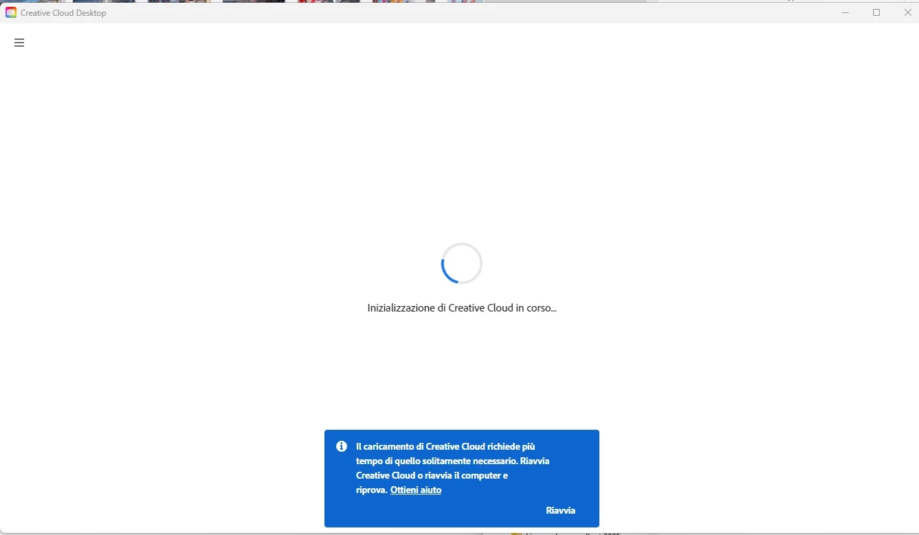 GGiuseppe_Macaluso6135ParticipantForum|Forum|5 months agoSeptember 4, 2025Creative cloud non si inizializza più e Photoshop non si apre più. Che ouò essere successo?Forum|Forum|5 months agoSeptember 4, 2025返信数 1.68 ビューSalve. Creative cloud non si inizializza più e photoshop 2025 non si apre. Che può essere sucesso?(Vedi allegato)Others