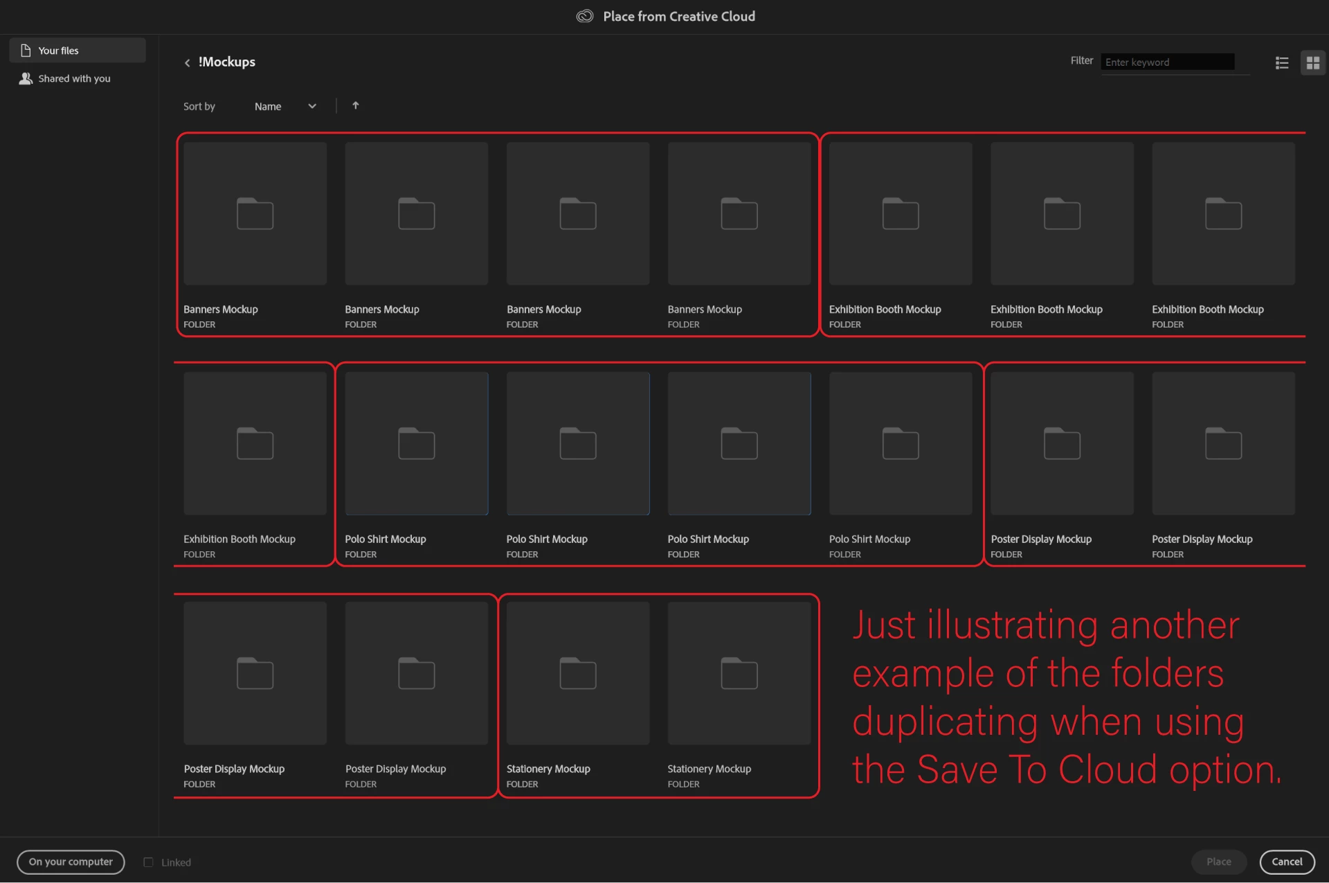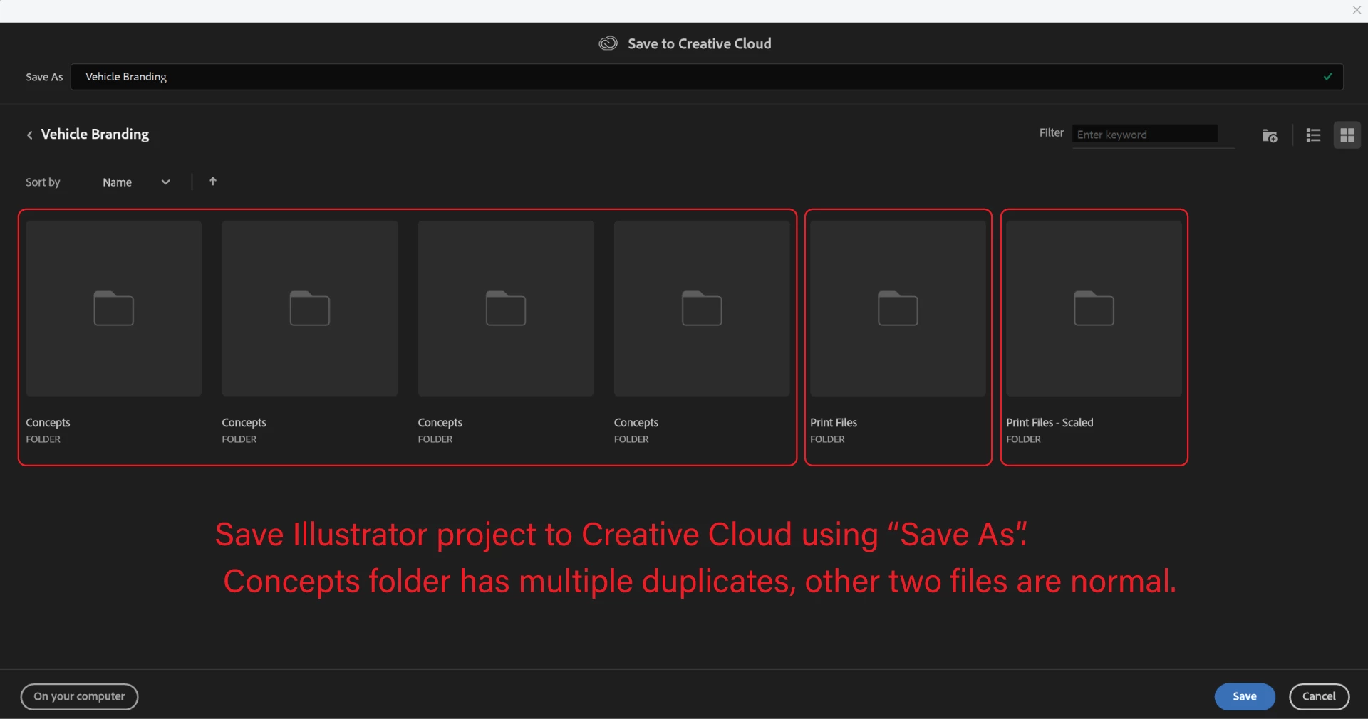 Displaying duplicate folders when saving to Creative Cloud using "Save As"