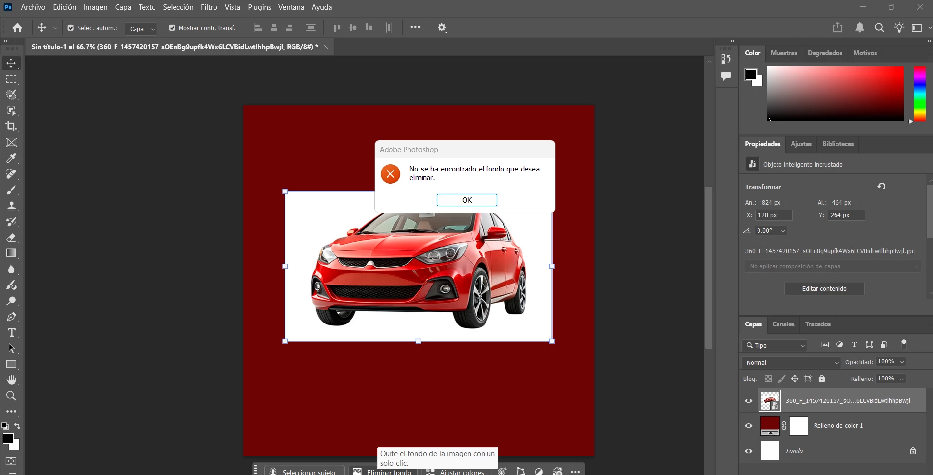 en las mas reciente actualizacion de fotoshop, no puedo quitar el fondo a ninguna imagen
